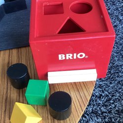 Formsorterare i trä med djurmotiv. Leksaken har olika former för barn att sortera. Denna leksak hjälper barn att utveckla finmotorik och formigenkänning.