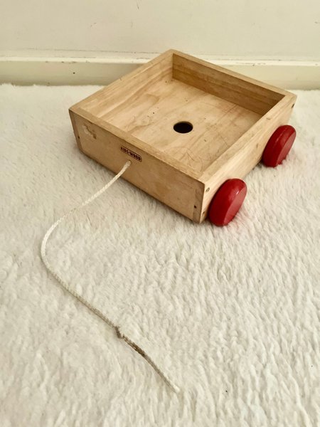 drag leksak Kids wood som kan vara förvaringslåda till klosar eller leksaker i fint skick