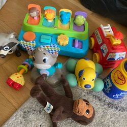 Ett roligt leksakspaket med diverse leksaker för barn. Innehåller bland annat en vattenkanna, sandleksaker, en formsorterare, skallror, en leksaksratt och en pop it.