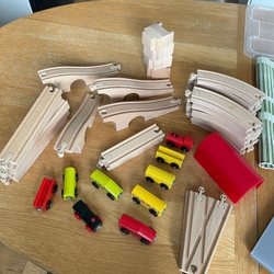 Låt fantasin flöda med denna träbyggsats! Innehåller stänger, klosser, skruvar och mycket mer. Totalt 90 delar, som ny