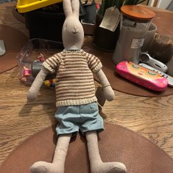 Helt ny mini kanin pojke med kläder från Maileg Artikelnummer 16-3110-00. Storlek: Mini, 26 cm.