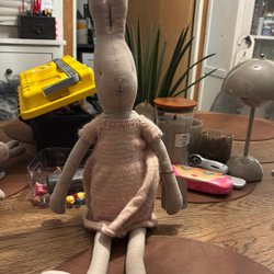 Ett gulligt kanin mjukdjur med kläder.