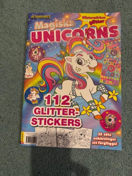 Magiska Unicorns tidning med 112 glitter stickers och 35 söta enhörningar att färglägga. Distribueras med Aftonbladet. ISBN: 7388163605908
