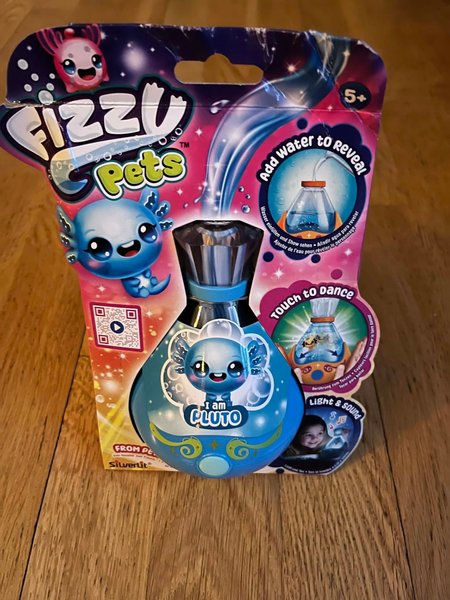 Fizzy Pets Pluto. Häll i vatten för att avslöja figuren. Rör för att få den att dansa. Med ljus och ljud.