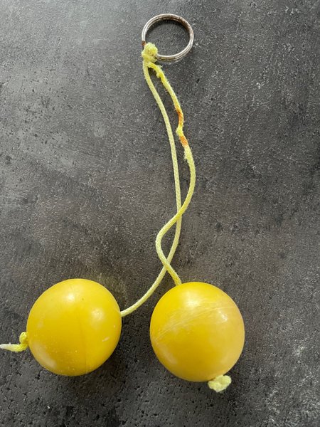 Et sæt bolas / poi. Perfekt til jonglering og underholdning. Trænger til ny snor. Populært i 70’erne