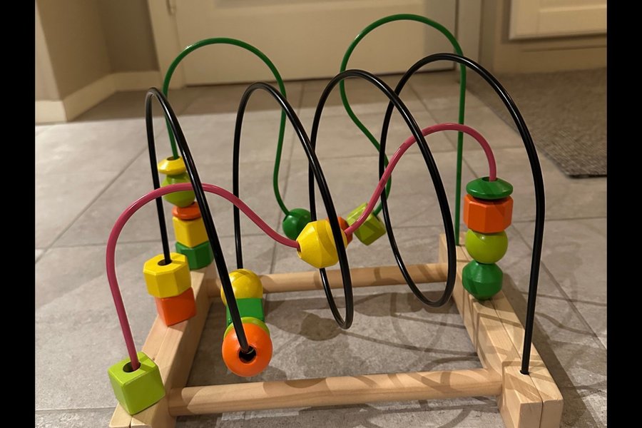 En rolig och lärorik kulram i trä. Perfekt för barn att utveckla sin motorik och sitt färgsinne. Med färgglada kulor och böjda trådar blir det en spännande leksak.