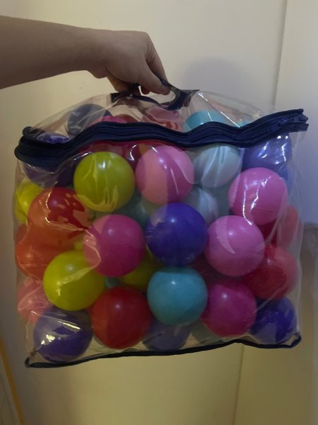 Färgglada bollar i en praktisk förvaringspåse. Perfekt för lek och skoj! 100st köptes ca 400kr