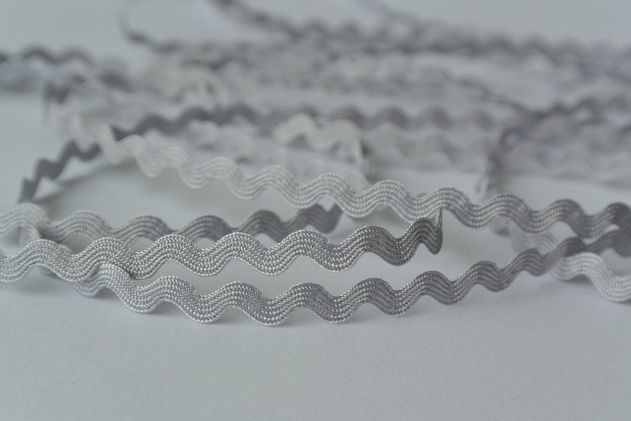 Sicksackband 4mm/6mm bred. Grå.