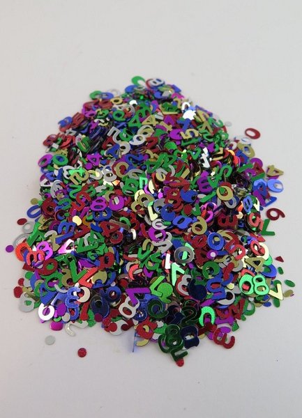 Konfetti siffror blandade färger.