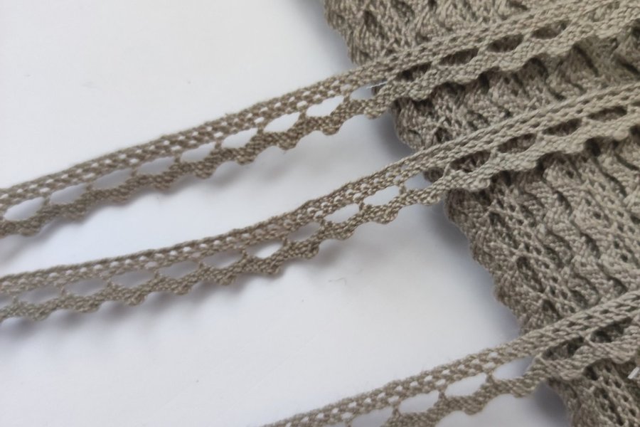 Gråbeige spets i bomull. 9 mm bred