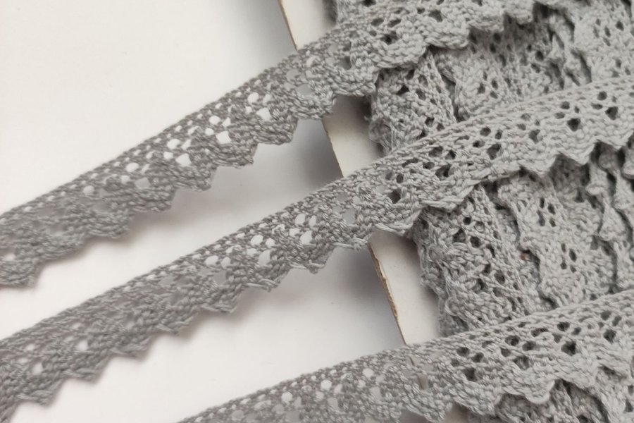 Grå spets av bomull. Bredd 15 mm.