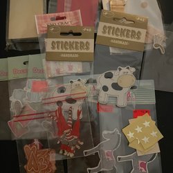 Ett parti med kort och kuvert i olika färger och mönster. Korten är i olika storlekar och utföranden.