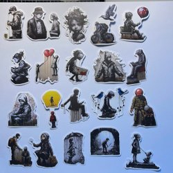 Ett ark med påskbilder. Bilderna inkluderar motiv av kaniner, kycklingar, påskägg och blommor.