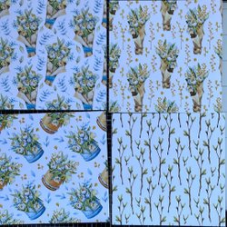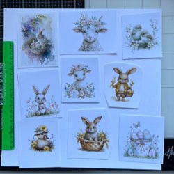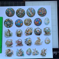 Ett ark med påskbilder för scrapbooking. Arket innehåller olika motiv med påsktema.