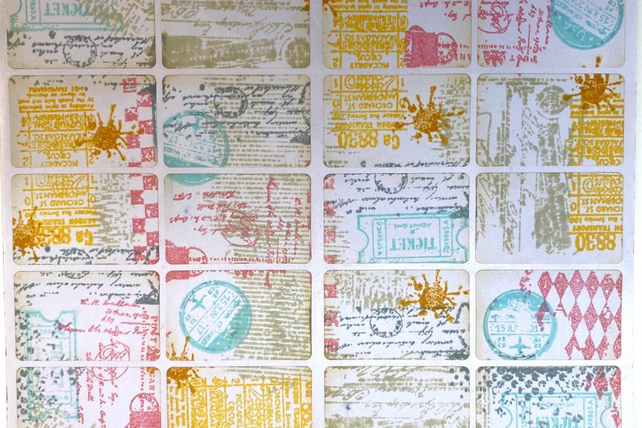 1 ark med 20 handstämplade etiketter till pyssel, junkjournal eller ev till annat skapande…