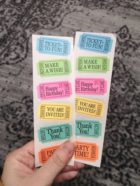 Klistermärken. Biljetter.