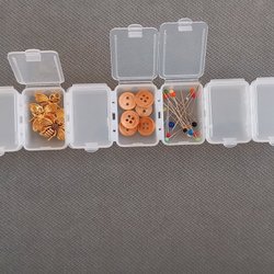 7 st delbara förvaringsaskar i plast, du budar ej på innehåll, de är på foto som exempel på vad du kan förvara i askarna.
