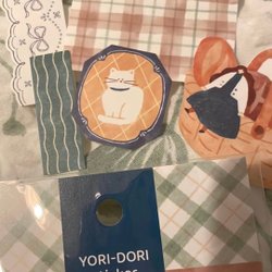 Allt är nästan oanvänt. Den vita plastfickan med rosa dragkedja har jag endast haft förvaring av stickers och liknande, ev lite spår av användning. Saker som blivit över som inte kommer till användning även om de är mycket användbart.