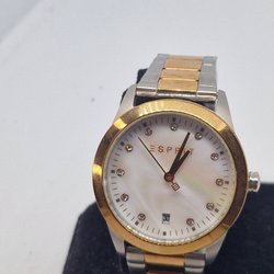 Roséguldfärgad boett och en vit urtavla med romerska siffror.