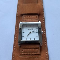 Klockan fungerar perfekt. Den har ett nytt batteri. Mindre repor finns. Remmen är sliten. Se bilden.