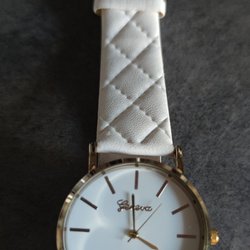 Damklocka med vitt läderband