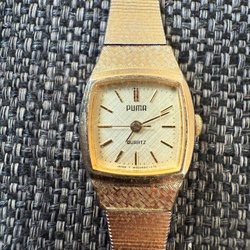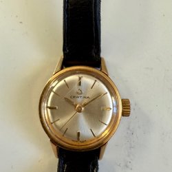 Eklora Quartz damklocka med guldfärgad boett och guldfärgat armband.