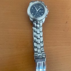 Säljer en Casio Edifice chronograph herrklocka. Klockan har en silverfärgad urtavla med kronograffunktioner och en röd sekundvisare. Boetten och armbandet är tillverkade av rostfritt stål. Klockan är vattentålig.