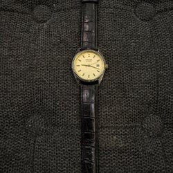 La Strada armbandsur med quartz urverk. Klockan har en svart urtavla med dag och datum visning. Boetten är tillverkad i stål och armbandet är brunt läder. Klockan är vattenresistent. Fungerar som det ska nytt batteri