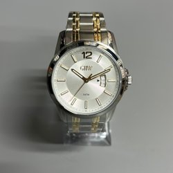 Stilrent armbandsur med silverfärgad urtavla och detaljer i guld. Klockan har en tvåfärgad länk i silver och guld. Perfekt för både vardag och fest.