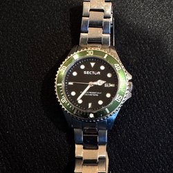 Klockan funkar som den ska men saknar en krona och har väldigt manga repor på glaset, därav priset.