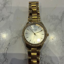 Elegant Regal damklocka med en stilren design. Klockan har en guldfärgad boett och ett silverfärgat mesharmband. Urtavlan är ljus med guldfärgade indexmarkeringar och visare. Perfekt för både vardag och fest.