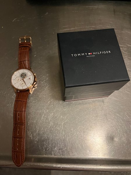 Tommy Hilfiger klocka med brunt armband. Klockan kommer i en Tommy Hilfiger ask.