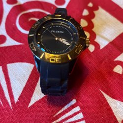 Säljer en Pilgrim damklocka åt min sambo. Mkt fint skick använd ett par tillfällen. Legat i byrålåda mest. Guldfärgad mesharmband. Klockan är tillverkad i rostfritt stål och har en stilren design. Vattenskydd 3ATM. Ref: 701732002.