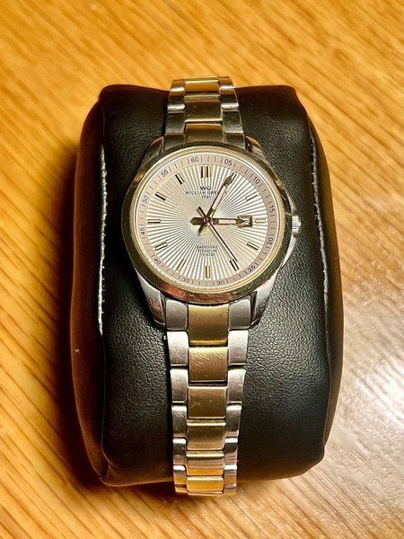 Fungerande armbandsur för dam från William Gregor med silverfärgad urtavla och safirglas. Boetten (29) och länken är tillverkad av titan och klockan är vattentät till 10 meter.