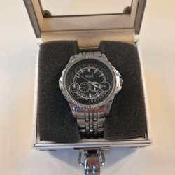 Klassisk Regal armbandsur med svart urtavla och datumvisning. Klockan har en rostfri stållänk med guldfärgade detaljer. Vattentät till 30M. Perfekt för både vardag och fest.