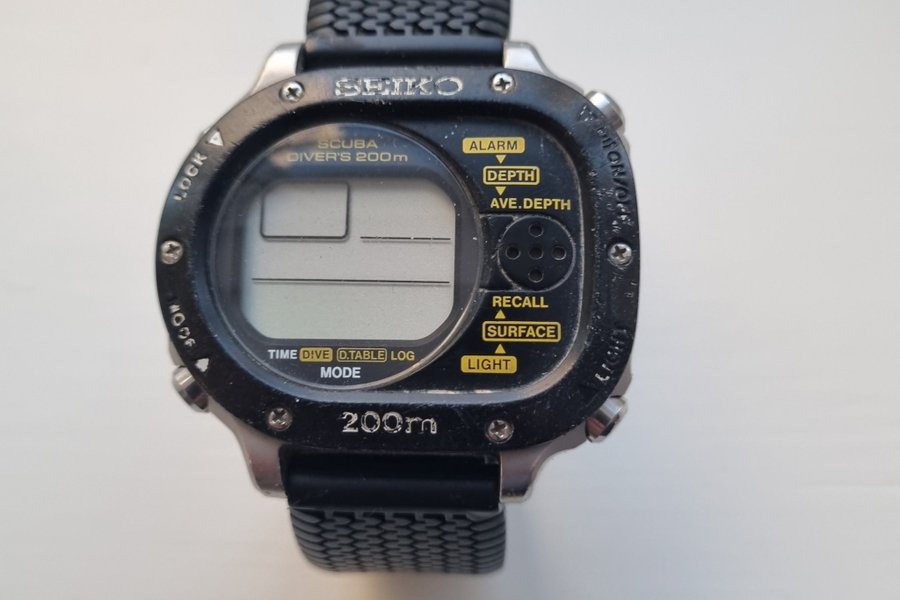 År 1990 utvecklade Seiko världens första 200 meter vattentåliga dykdatorklocka som innehöll information baserad på den amerikanska flottans dyktabell för direktuppstigning (en tabell för att läsa av förhållandet mellan vattendjup, tid och påverkan på kroppen). Klockans sensorfunktioner kunde fånga en stor mängd information som var nödvändig för dykararbete i realtid. Förutom att mäta dyktiden var klockan fullpackad med många funktioner, inklusive att mäta vilotid vid ytan och beräkna och visa information om direktuppstigning för nästa dyk. Den asymmetriska designen hade LCD-displayen på vänster sida och sensorerna på höger sida. Boetten var horisontell, vilket var ovanligt för en klocka. För att förhindra oavsiktlig användning var knapparna halvt begravda i boetten.