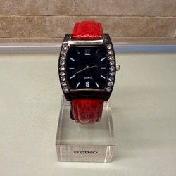 Säljer en elegant damklocka med svart urtavla och ett stilrent armband i svart och guld. Klockan har en klassisk design som passar perfekt till både vardag och fest. Urtavlan är tydlig och lättläst. Ett tidlöst smycke som kompletterar din stil.