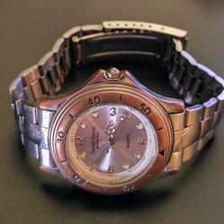 Klockan fungerar bra med nytt batteri. Den håller rätt timing. Ingen garanti för begagnat föremål ges.