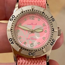 O.N.E damklocka med metallarmband. Klockan är vattenresistent och märkt med 813-155-9 på baksidan. Urtavlan är vit med svarta siffror och en röd sekundvisare . Levereras med ett nytt batteri, håller tiden fint!