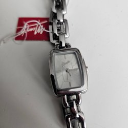 Lorus Quartz damklocka med ett silverfärgat boett och en matchande silverfärgad länk i metall. Urtavlan är silverfärgad med svarta visare och indexmarkeringar. Klockan har ett kvartsurverk. Behöver nytt batteri