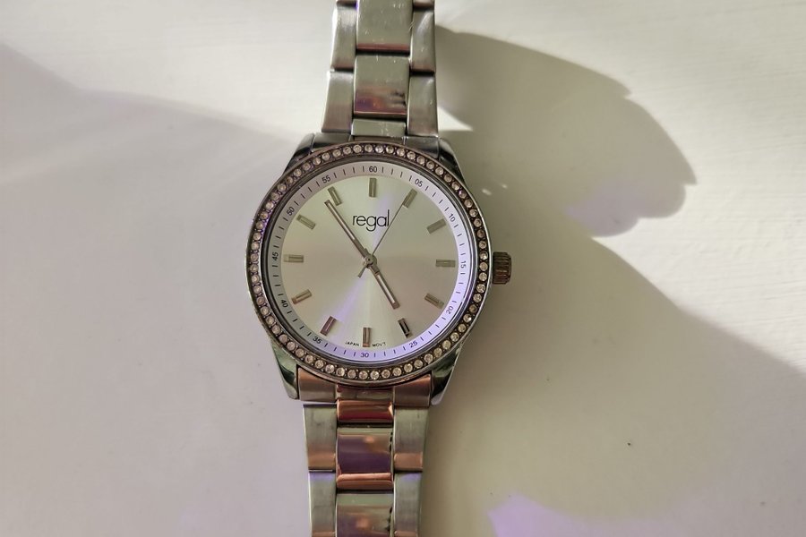 Snygg damklocka från Regal med ett quartz urverk. Klockan har ett silverfärgat armband.