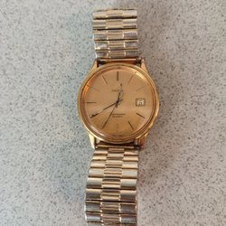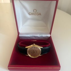 A two-tone Omega quartz watch with an integrated bracelet in excellent condition. The case and bracelet show signs of age and use and the bracelet will fit a wrist of approximately 19 cm. The crown is original. Service history is unknown, but the watch and its features work well.