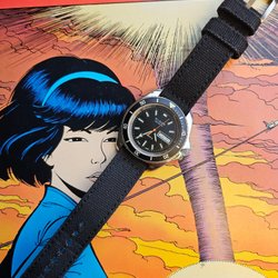 Ovanlig Vintage Marathon militärklocka med datum. Klockan är i bra skick (se bilder) och funkar som den ska. Levereras med ett svart Nato.