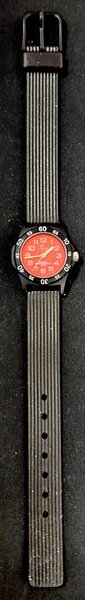 Tajms armbandsur med quartz urverk. Klockan har en röd urtavla med svarta detaljer och ett svart armband. Passar till ett barn eller ungdom som vill ha en snygg och stilren klocka.