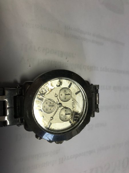 Säljer ett Visa Quartz armbandsur. Klockan har ett silverfärgat boett och länk i metall. Urtavlan är ljus med tre mindre visare och romerska siffror. Skickas i befintligt skick.