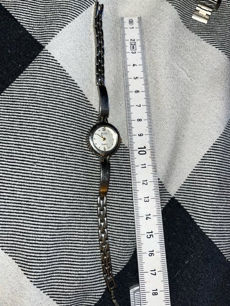 Ecco Quartz dameur med et klassisk design. Uret har en sølvfarvet urkasse og en matchende metalrem. Urskiven er hvid med sorte tal og visere. Uret er et quartz-ur.