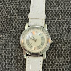 Klassisk Lorus armbandsur med svart urtavla och tydliga siffror. Klockan har en datumvisning vid klockan 3. Boetten är silverfärgad och armbandet är tillverkat av äkta läder. Baksidan av klockan är märkt med 'Lorus, Water Resistant, Movement Japan V182-X246'.fungerar som det ska nytt batteri