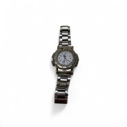 Armbandsur med stållänk. Boetten mäter 40mm i diameter.fungerar som det ska nytt batteri