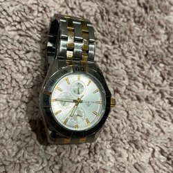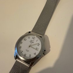 Moretime armbandsur med stållänk. Klockan har en svart urtavla med tydliga siffror och datumvisning. Fullt fungerande