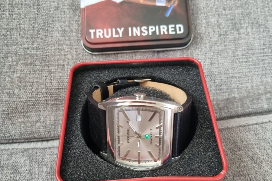 Fossil Davis Cup klocka i nyskick. Klockan kommer i sin original ask. Perfekt för tennisfantasten eller Fossil-samlaren. Nytt batteri krävs.